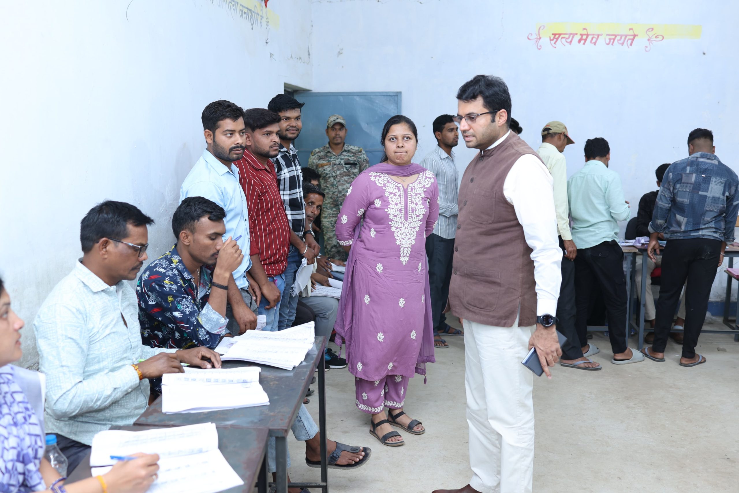 रायगढ़, 20 फरवरी 2025/ त्रि-स्तरीय पंचायत निर्वाचन-2025 अंतर्गत आज विकासखंड खरसिया एवं धरमजयगढ़ में द्वितीय चरण की मतदान प्रक्रिया विभिन्न मतदान केंद्रों के माध्यम से हुई। जिसका कलेक्टर श्री कार्तिकेया गोयल ने निरीक्षण किया। इस दौरान पुलिस अधीक्षक श्री दिव्यांग पटेल, प्रशिक्षु आईपीएस श्री हर्षित मेहर, आयुक्त नगर निगम श्री बृजेश सिंह क्षत्रिय भी उपस्थित रहे।